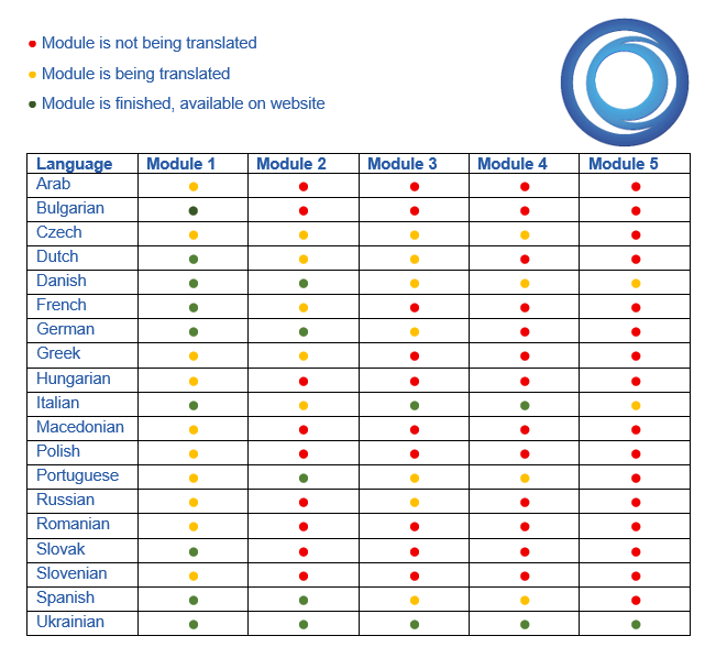 The translation status of the subsequent modules varies. You can find an overview of the current status (as of June) in the table below. If you would like to aid us in translating modules into your own language, feel free to contact us here. However, if you would just like to be updated on the latest translations, make sure to follow FuseNet on Facebook, Instagram and LinkedIn!